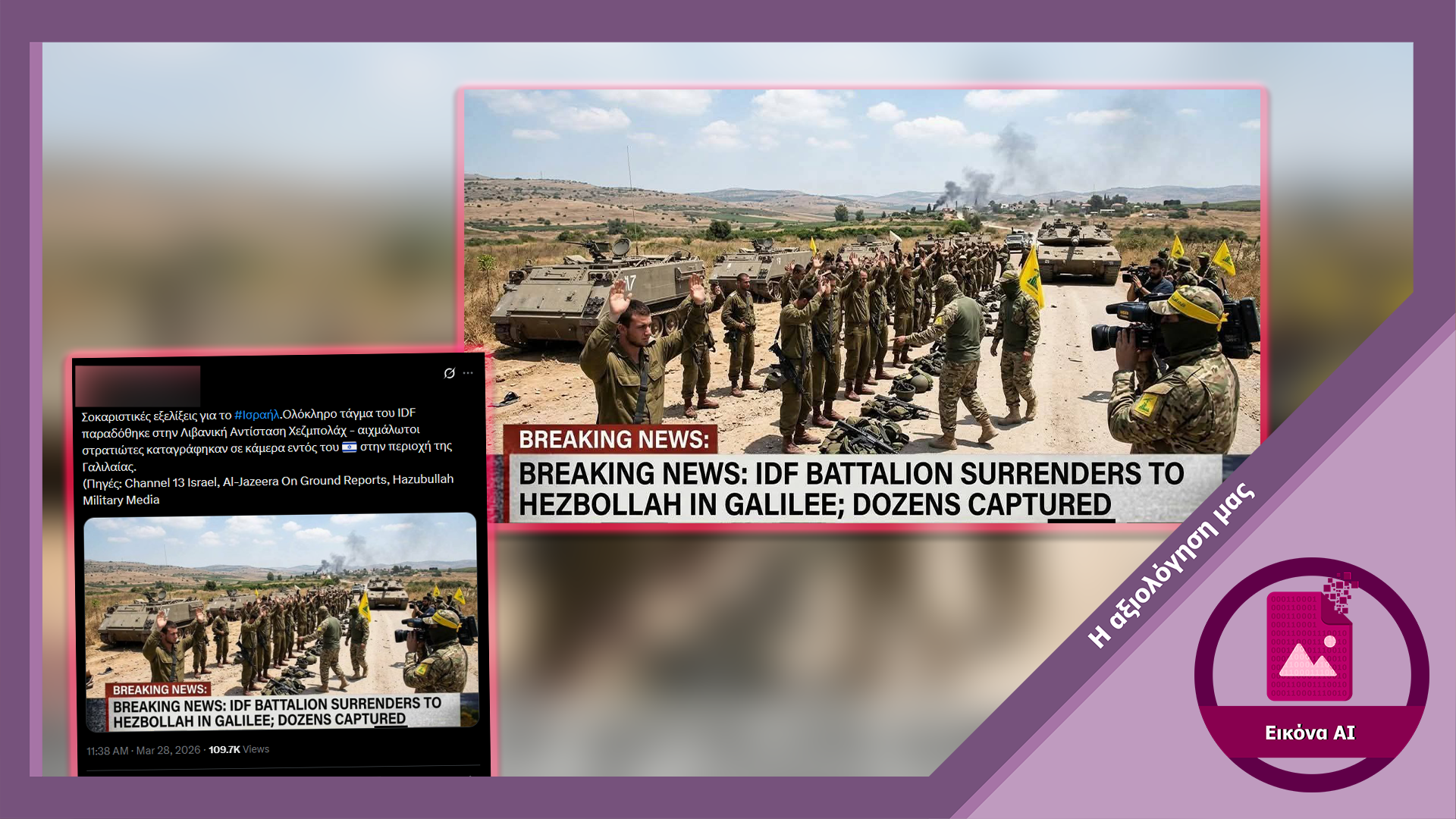 Αναρτήσεις στα μέσα κοινωνικής δικτύωσης αναπαράγουν μια εικόνα με λεζάντα που παραπέμπει σε ρεπορτάζ τηλεοπτικού δελτίου ειδήσεων και υποτίθεται πως δείχνει τάγμα του ισραηλινού...