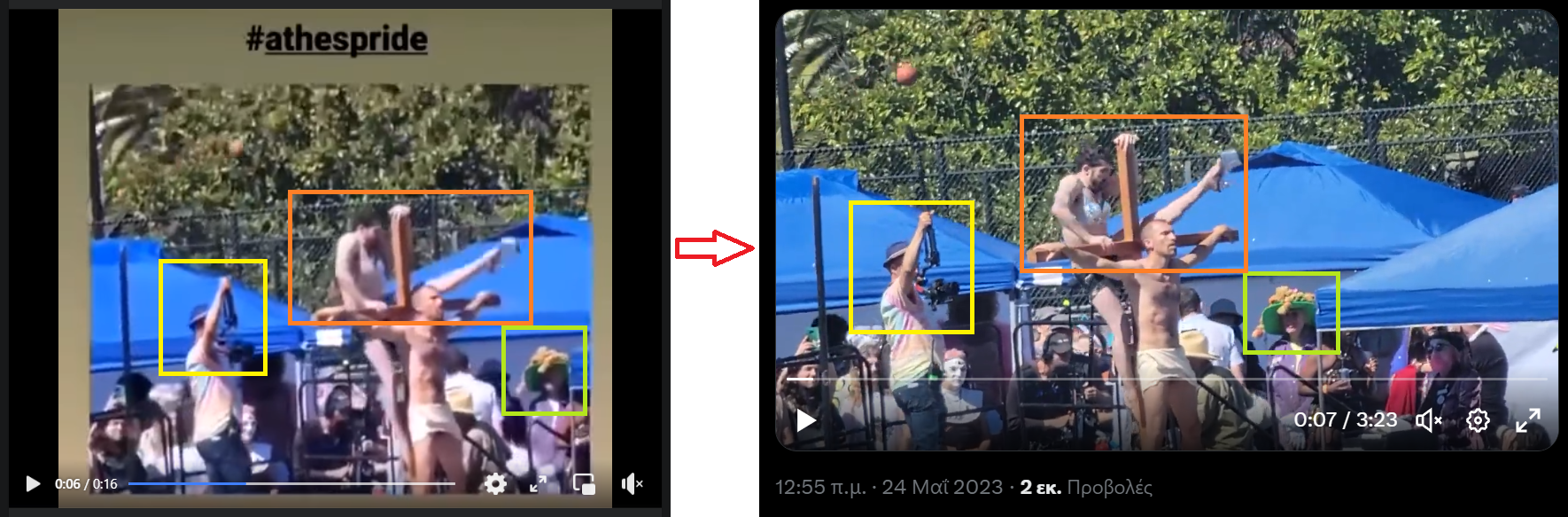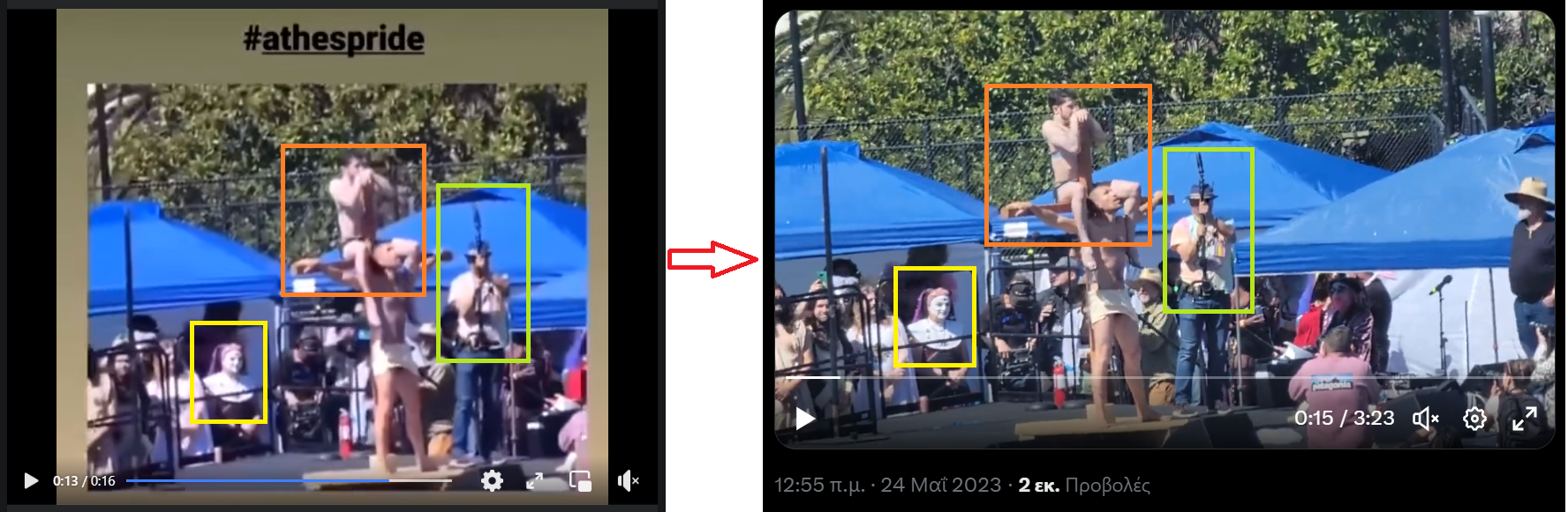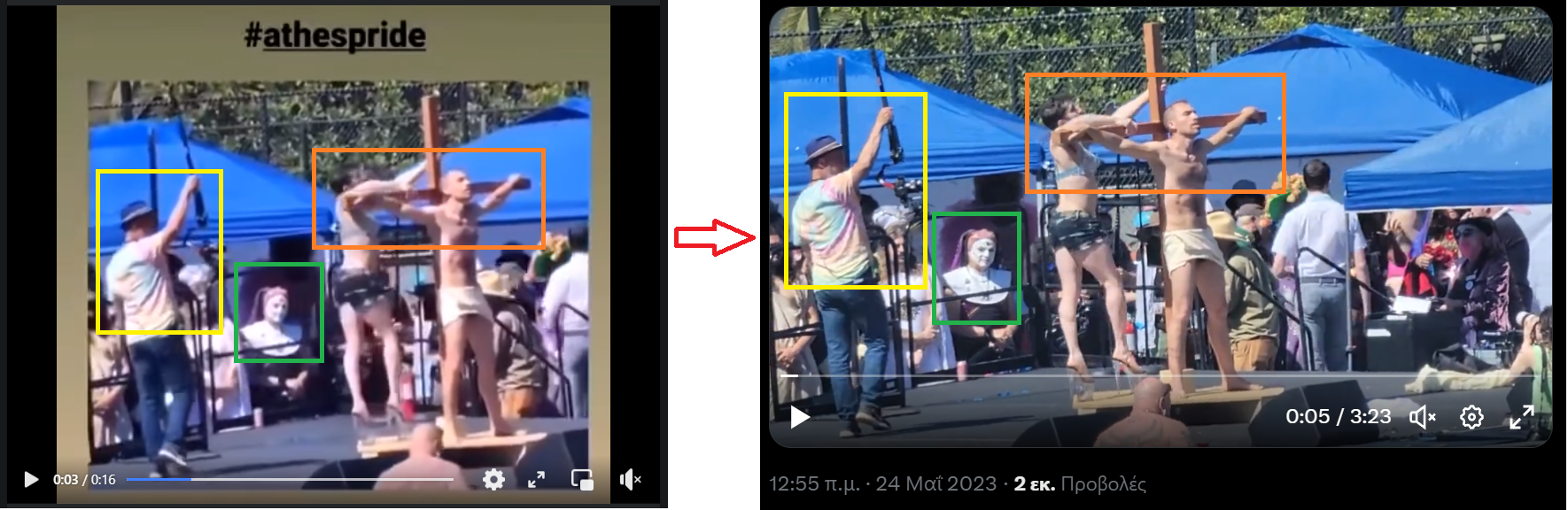 Όπως βλέπουμε και στη σύγκριση στιγμιότυπων που ακολουθεί, πρόκειται για το ίδιο βίντεο.