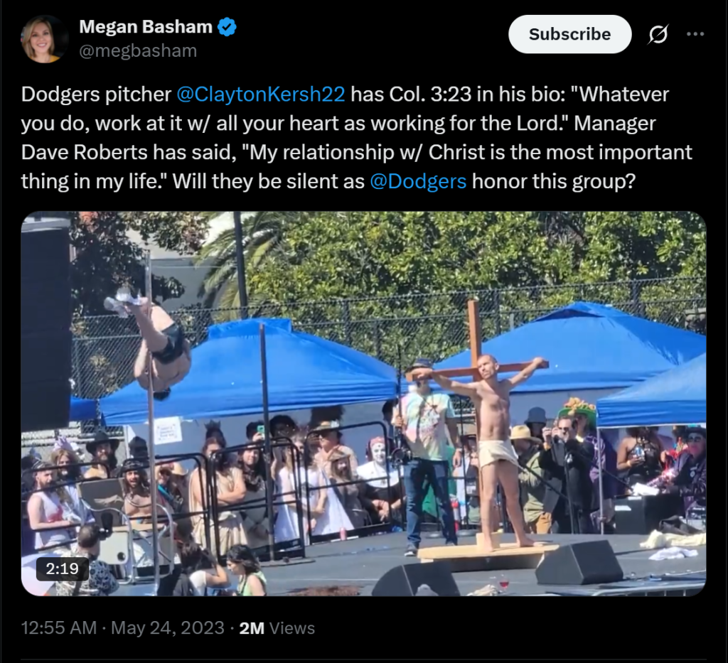 Επιπλέον, μέσω αναζήτησης με λέξεις-κλειδιά στην πλατφόρμα του YouTube, εντοπίσαμε βίντεο το οποίο αναπαράγει αναρτήσεις του Twitter, οι οποίες έχουν επίσης δημοσιεύσει βίντεο συνολικής διάρκειας 3:23 λεπτών, στο οποίο διαπιστώνουμε ότι περιέχεται και το εξεταζόμενο απόσπασμα. Οι εν λόγω αναρτήσεις αφορούν κριτική που ασκήθηκε στην ομάδα baseball, Dodgers, σχετικά με πρόσκληση που έκαναν στην καλλιτεχνική ομάδα “The Sisters of Perpetual Indulgence” για συμμετοχή σε εκδήλωσή τους.