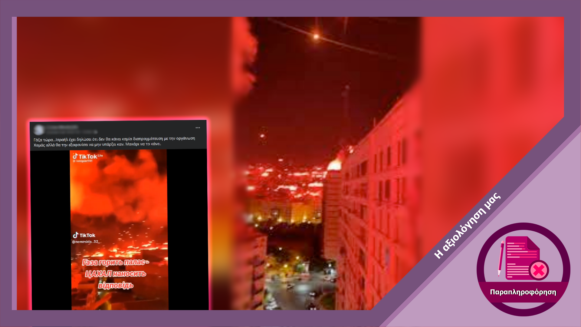 Ο ισχυρισμός ότι το επίμαχο βίντεο δείχνει επίθεση του Ισραήλ σε πολυκατοικίες στην Γάζα είναι ψευδής. Πρόκειται για βίντεο που δείχνει πανηγυρισμούς φιλάθλων ποδοσφαιρικής ομάδας στην Αλγερία και είναι προγενέστερο από την επίθεση της Χαμάς στο Ισραήλ.