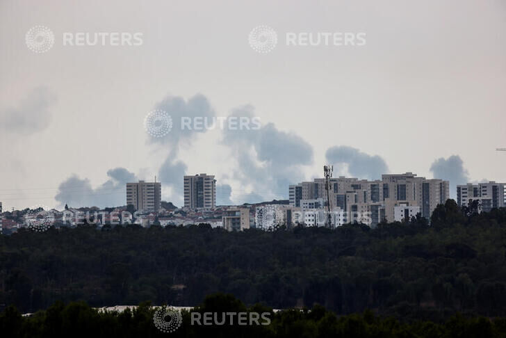 Επιπρόσθετα, στο αρχικό βίντεο του ρεπορτάζ ακούμε καθαρά εκρήξεις στο βάθος οι οποίες προέρχονται από καταρρίψεις πυραύλων από το αντιπυραυλικό σύστημα Iron Dome το οποίο χρησιμοποιεί το Ισραήλ. Από την ειδησεογραφία για τις 9 Οκτωβρίου, επιβεβαιώνεται ότι σημειώνονταν συνεχείς πυραυλικές επιθέσεις στις οποίες ανταποκρίνονταν οι Ισραηλινοί με χρήση του Iron Dome. Σε περαιτέρω αναζήτηση μας εντοπίσαμε φωτογραφία που τράβηξε ο Amir Cohen, φωτογράφος του Reuters ο οποίος εργάζεται στο Ισραήλ, σε ιστοσελίδα-αποθετήριο φωτογραφικού υλικού. Στην εικόνα, όπως φαίνεται και από την περιγραφή που έδωσε ο φωτογράφος, βλέπουμε καπνό στον ουρανό πάνω από την Γάζα μετά από την εκτόξευση πυραύλων από την λωρίδα της Γάζας προς το Ισραήλ, όπως φαίνεται από την πόλη Sderot, νοτιοανατολικά του Ισραήλ.