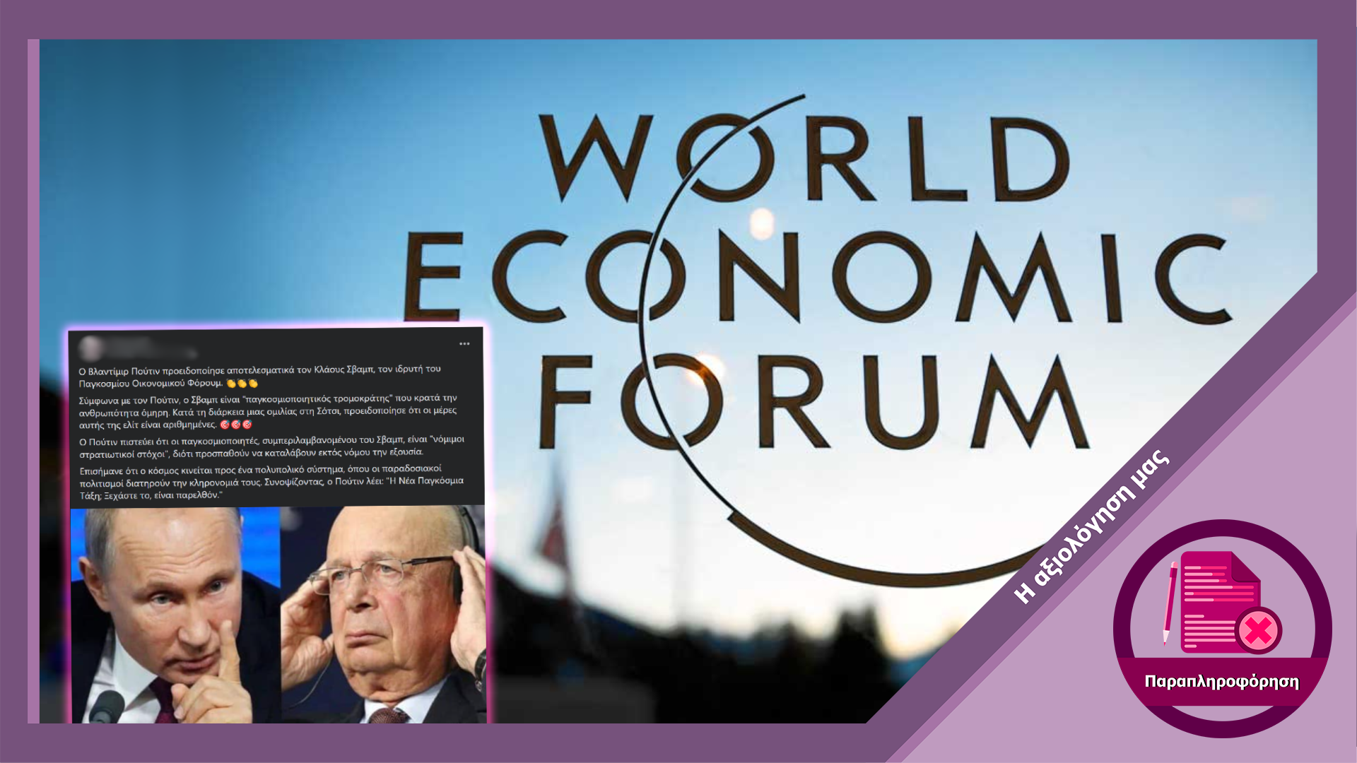 Ψευδής ισχυρισμός για προειδοποιήσεις του Βλαντιμίρ Πούτιν προς τον Κλάους Σβάμπ και τη “διεθνή ελίτ”