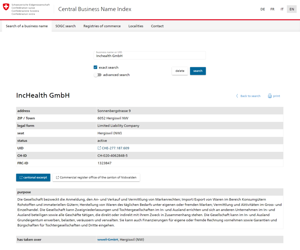 Σε επικοινωνία μας με τον Peter Mueler, εκπρόσωπο της εταιρείας Inchealth GmbH, μας ανέφερε τα εξής: