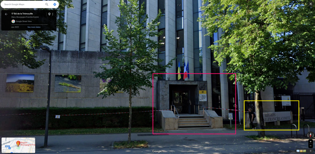 Μέσα από εικόνες της υπηρεσίας Google Street View επιβεβαιώνεται ότι το σημείο που βρίσκονται οι αγρότες στο επίμαχο βίντεο είναι όντως το προαναφερόμενο κτήριο στην πόλη Dijon.