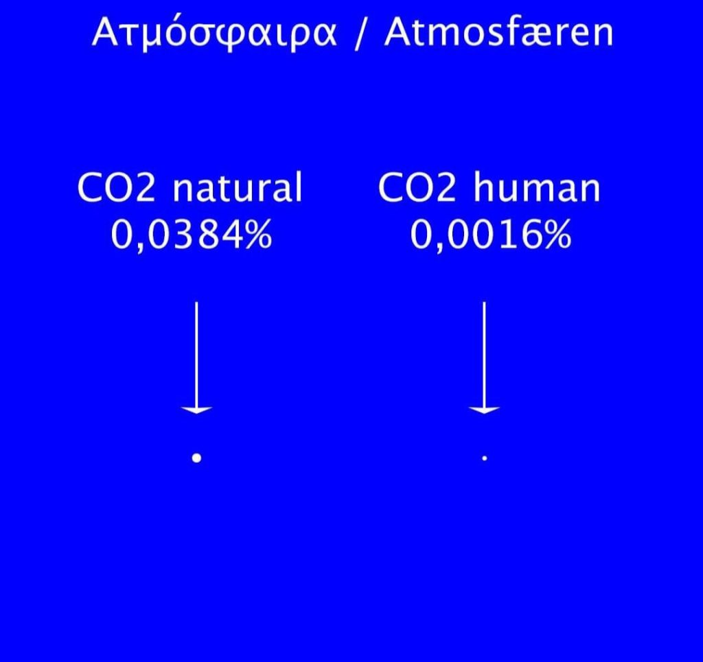 Το φυσικό CO2 στην ατμόσφαιρα είναι 0,0384%, ενώ το CO2 που παράγει ο άνθρωπος είναι 0,0016%.