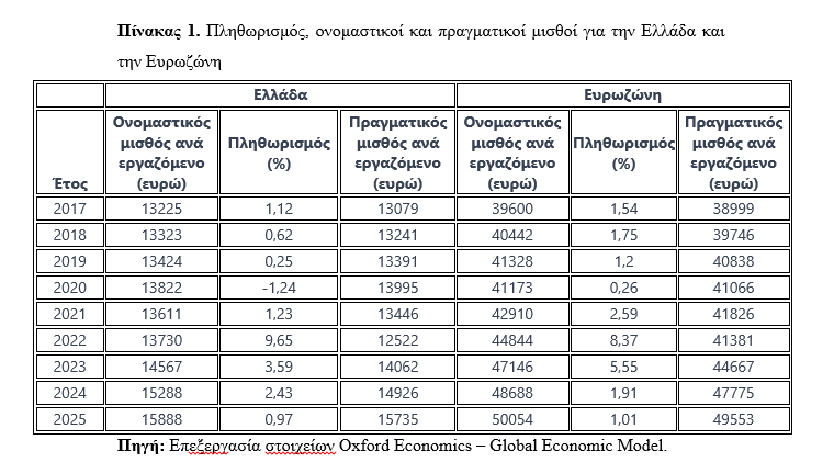 Ο ελληνικός κατώτατος μισθός έχει ανέβει κατά 28% και ο γενικός μισθός κατά 20%, πάνω από τον πληθωρισμό σωρευτικά.