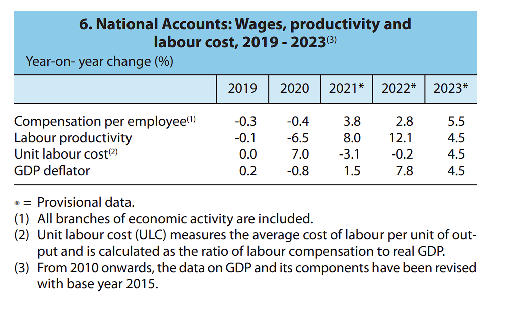 Εκτιμήσεις μεταβολής ετήσιων μισθών. Πηγή: ΕΛΣΤΑΤ, «Η Ελλάς με Αριθμούς» 2024, ενότητα Εθνικών Λογαριασμών, σελ. 21