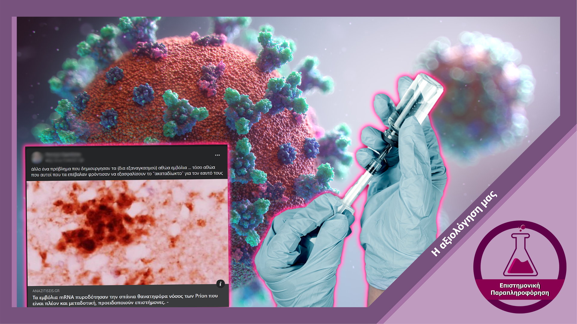Ο ισχυρισμός ότι τα mRNA εμβόλια κατά της COVID-19 πυροδότησαν ασθένειες που ανήκουν στην ομάδα των νόσων prion, όπως η ασθένεια Creutzfeldt-Jakob, είναι εντελώς αβάσιμος. Μεμονωμένες αναφορές για διάγνωση με ασθένεια prion μετά τον εμβολιασμό δεν αποδεικνύουν από μόνες τους αιτιολογική συσχέτιση. Η μελέτη του J. Bart Classen που αναφέρεται στα υπό εξέταση άρθρα είναι δημοσιευμένη σε επιστημονικό περιοδικό αμφίβολης αξιοπιστίας και δεν παρέχει καμία ουσιαστική απόδειξη για τον ισχυρισμό. Δεν υπάρχουν στοιχεία για αύξηση των ασθενειών prion τα τελευταία τρία χρόνια, ούτε για τον ισχυρισμό πως η υποτιθέμενη αυτή αύξηση αφορά κυρίως εμβολιασμένους.