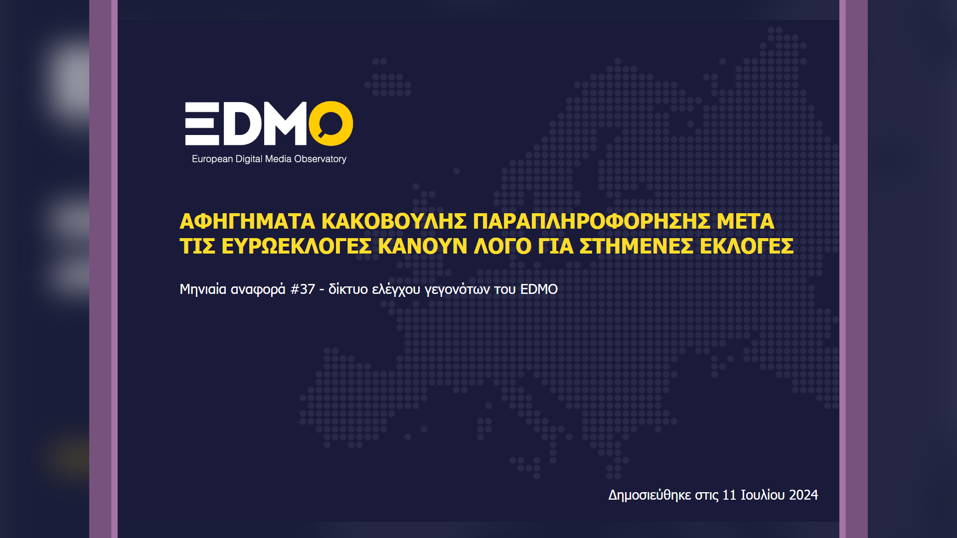 Οι 34 οργανισμοί-μέλη του δικτύου ελέγχου γεγονότων του EDMO, οι οποίοι συνεισέφεραν στοιχεία για την εν λόγω αναφορά, δημοσίευσαν συνολικά 1,750 άρθρα fact-checking μέσα στον Ιούνιο του 2024Οι οργανισμοί ελέγχου γεγονότων που συνεισέφεραν υλικό γι’ αυτή την αναφορά: AFP, APA, Correctiv, Demagog.cz, Demagog.pl, Demagog.sk, DPA, Eesti Päevaleht, EFE Verifica, Ellinika Hoaxes, Eurocomunicare, Fact Check Cyprus, Factcheck Vlaanderen, Faktabaari, Faktisk, Greece Fact Check, Källkritikbyrån, InfoVeritas, Lakmusz, Les Surligneurs, Logically Facts, Maldita, Medizin transparent, Newtral, Oštro, PagellaPolitica/Facta, Polígrafo, Pravda, Re:Baltica, The Journal Fact-Check, TjekDet, VerificaRTVE, Verificat, VRTNWS. Θα βρείτε ολόκληρη την 37η αναφορά του EDMO στα αγγλικά εδώ και στα ελληνικά εδώ.