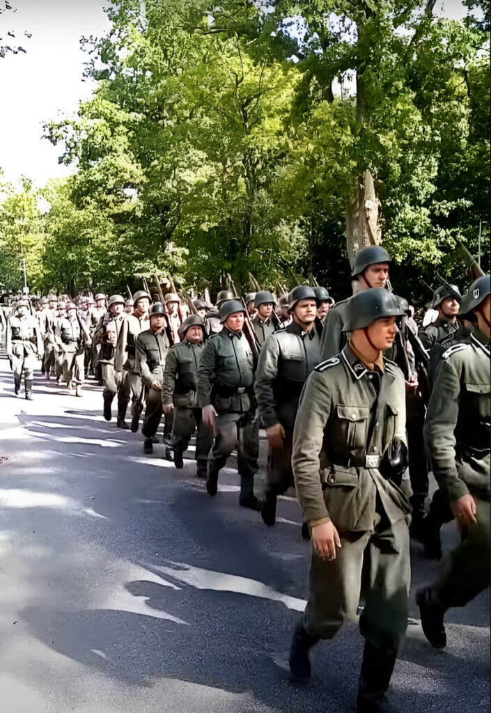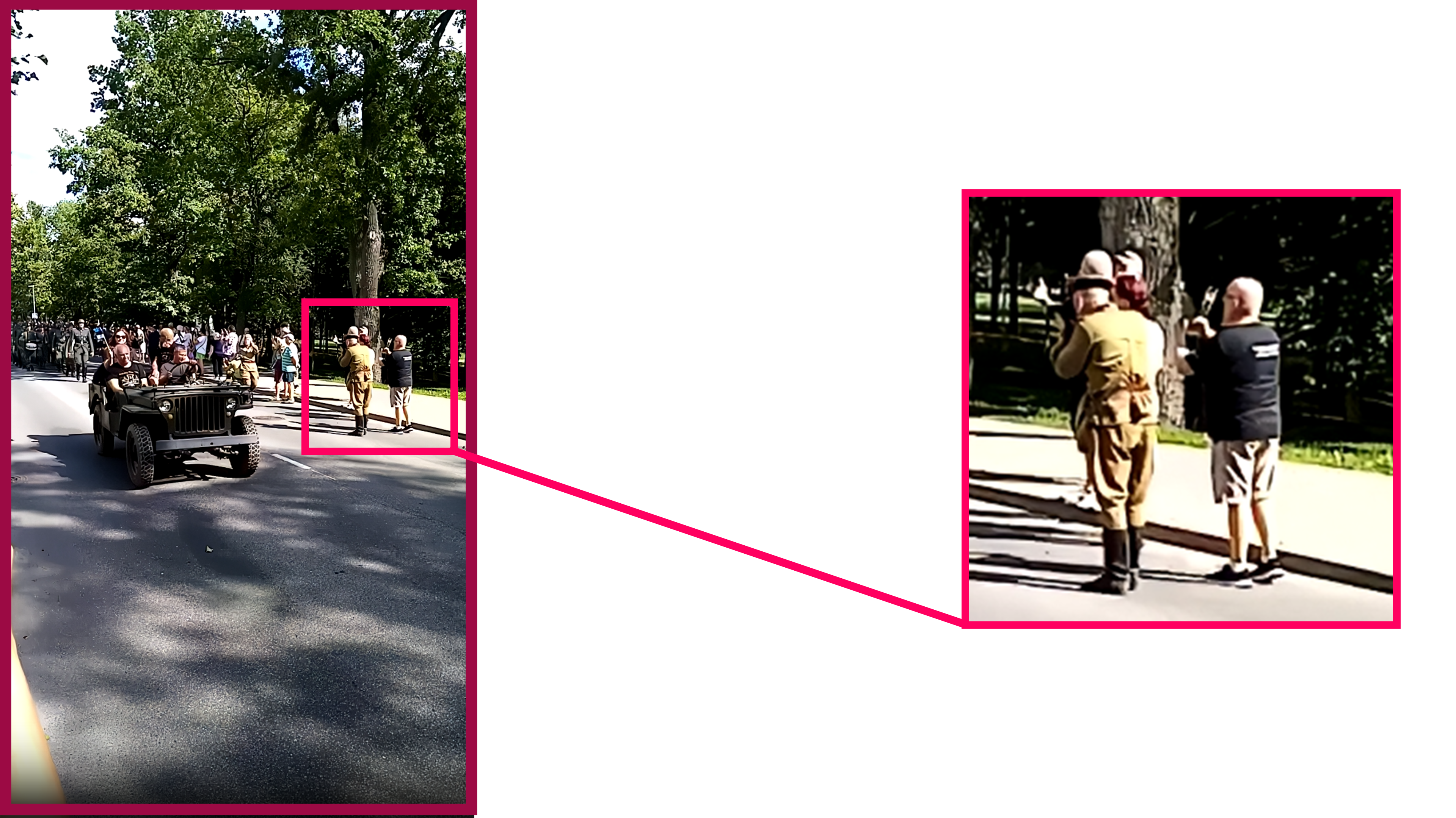 Σε αυτό το πλαίσιο λαμβάνει χώρα και η παρέλαση με άτομα που είναι ντυμένα ως στρατιώτες της ναζιστικής Γερμανίας. Μάλιστα αν προσέξουμε το επίμαχο βίντεο βλέπουμε ότι στην άκρη του δρόμου βρίσκονται και άτομα που φοράνε στολές στρατιωτών της σοβιετικής Ρωσίας.