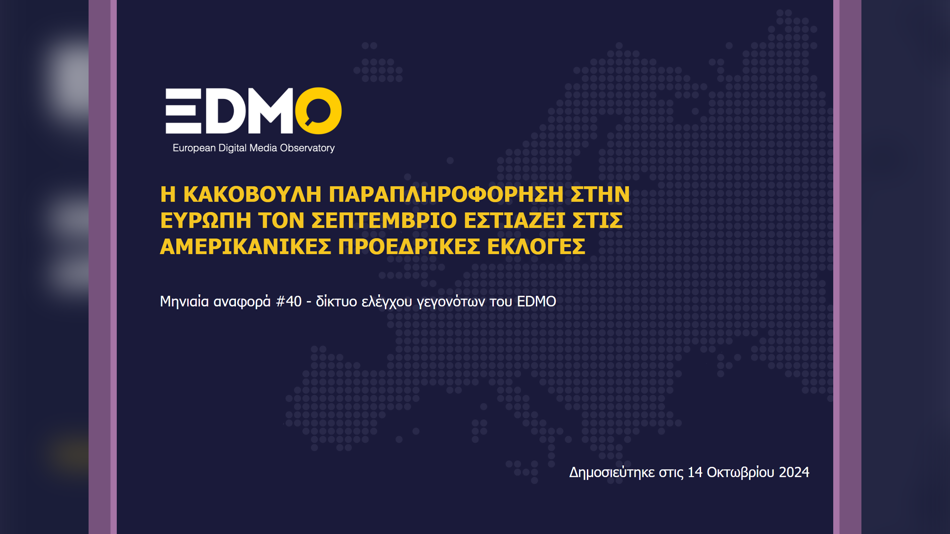 Οι 36 οργανισμοί-μέλη του δικτύου ελέγχου γεγονότων του EDMO, οι οποίοι συνεισέφεραν στοιχεία για την εν λόγω αναφορά, δημοσίευσαν συνολικά 1,817 άρθρα fact-checking μέσα στον Σεπτέμβριο του 2024.Οι οργανισμοί ελέγχου γεγονότων που συνεισέφεραν υλικό γι’ αυτή την αναφορά: AFP, APA, Correctiv, Demagog.cz, Demagog.pl, Demagog.sk, DPA, Eesti Päevaleht, EFE Verifica, Ellinika Hoaxes, Eurocomunicare, Fact Check Cyprus, Factcheck Vlaanderen, Faktabaari, Faktisk, Greece Fact Check, Källkritikbyrån, InfoVeritas, Lakmusz, Les Surligneurs, Logically Facts, Maldita, Medizin transparent, Newtral, Oštro, PagellaPolitica/Facta, Polígrafo, Pravda, Re:Baltica, The Journal Fact-Check, TjekDet, VerificaRTVE, Verificat, VRTNWS. Θα βρείτε ολόκληρη την 40η αναφορά του EDMO στα αγγλικά εδώ και στα ελληνικά εδώ.