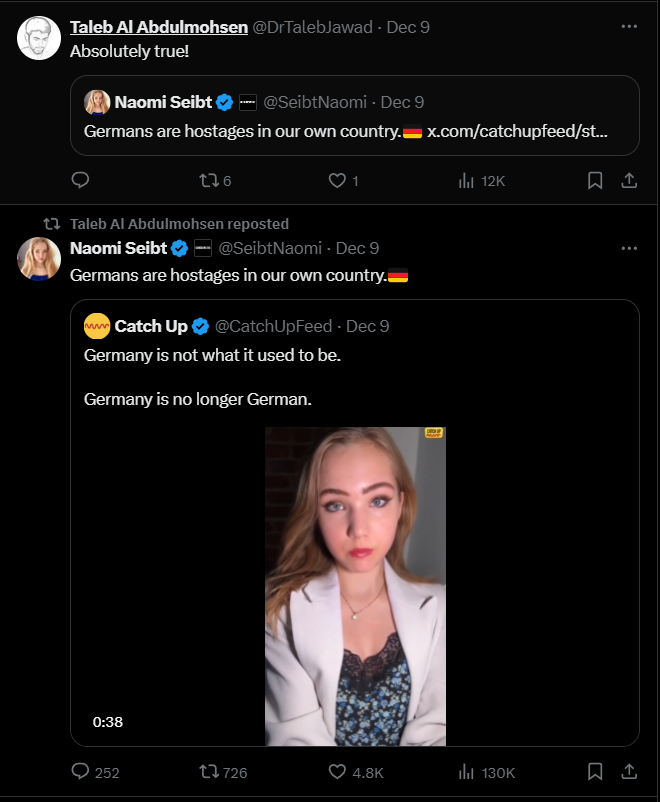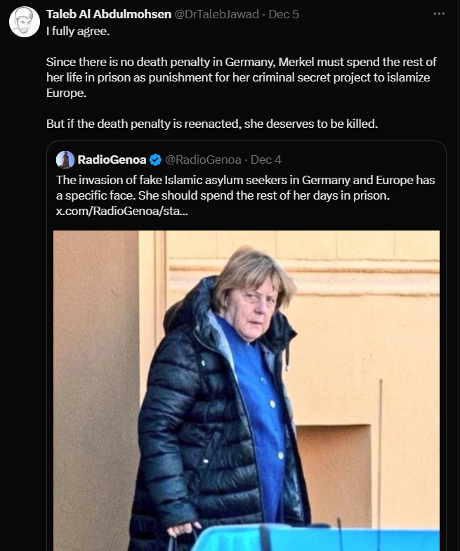 Επίσης, σε σχετική ανάρτηση του στο X λίγο πριν την επίθεση παρέθεσε σειρά βίντεο στα οποία τάσσονταν ανοιχτά κατά των γερμανών πολιτών τους οποίους κατηγορούσε ότι διώκουν τον ίδιο και όσους ασκούν κριτική στο Ισλαμ.