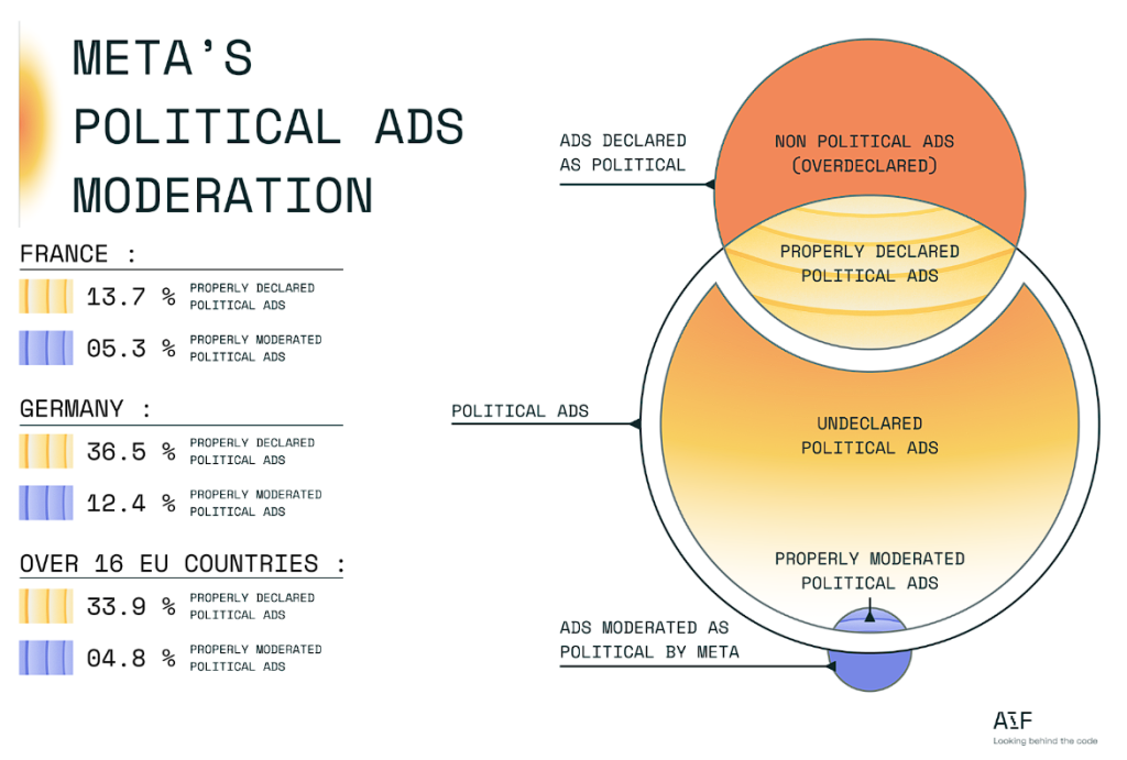 For example, AI Forensics conducted a comprehensive analysis of all ads shown on Meta’s platforms in 16 EU countries for several months. It found that, in most cases, Meta’s systems failed to even detect political ads as political, sparing them from stricter rules and transparency requirements.