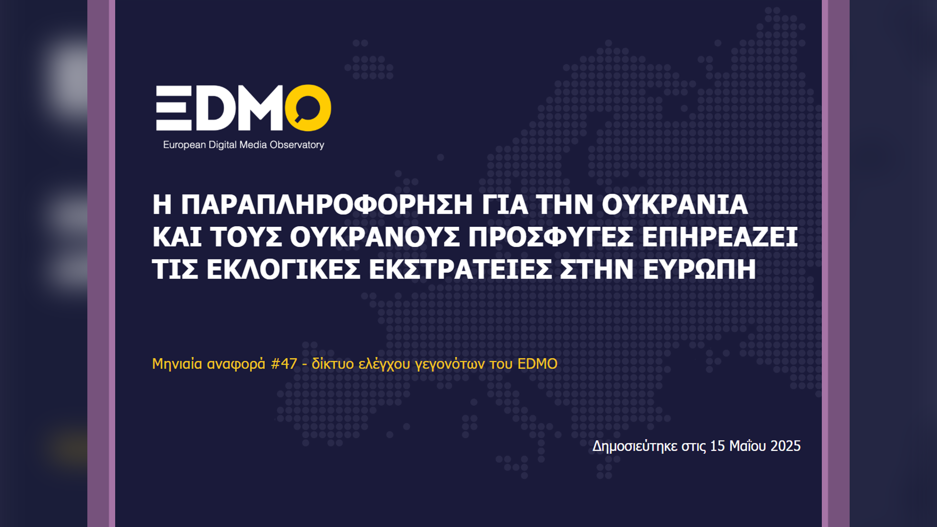 Οι 33 οργανισμοί του δικτύου ελέγχου γεγονότων του EDMO, οι οποίοι συνεισέφεραν στοιχεία για την εν λόγω αναφορά, δημοσίευσαν συνολικά 1,551 άρθρα fact-checking μέσα στον Απρίλιο του 2025.Οι οργανισμοί ελέγχου γεγονότων που συνεισέφεραν υλικό γι’ αυτή την αναφορά: AFP, Kallkrytikbyran, Poligrafo, TjekDet, Factcheck Vlaanderen, Info Veritas, Greece fact-check, The Journal, Check4Facts, DPA, Pravda, Maldita, Rtve, Correctiv, Demagog.cz, Ostro, APA, Funky, Faktisk, Delfi.lt, Ellinika Hoaxes, EFE, Factico, Lakmusz, Eurocomunicare, FactReview, Demagog.sk, Re:Baltica, Demagog.pl, Delfi.ee, Newtral, Pagella Politica, Facta. Θα βρείτε ολόκληρη την 47η αναφορά του EDMO στα αγγλικά εδώ και στα ελληνικά εδώ.