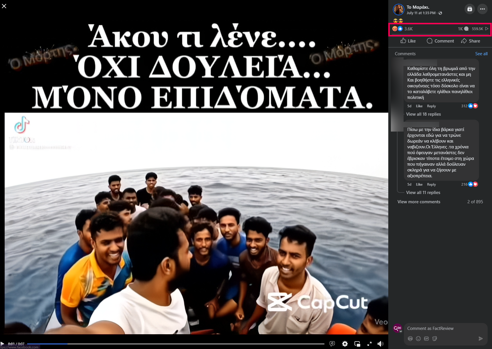Βίντεο AI που παρουσιάζεται ως πραγματικό υποτίθεται πως δείχνει μετανάστες σε βάρκα να λένε “όχι δουλειά, μόνο επιδόματα”