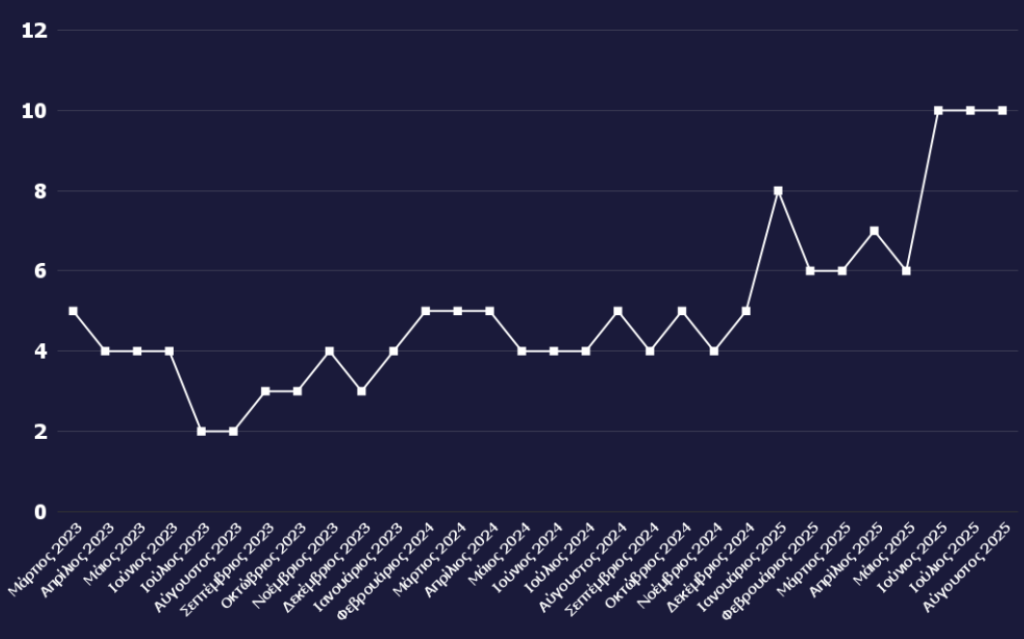 Το ποσοστό των ιστοριών παραπληροφόρησης που αξιοποιούν περιεχόμενο παραγόμενο με τεχνητή νοημοσύνη παρέμεινε σταθερό τον Αύγουστο. Από τα 1,441 άρθρα επαλήθευσης, τα 147 αφορούσαν τη χρήση της τεχνολογίας αυτής στην παραπληροφόρηση, δηλαδή το 10% του συνόλου.