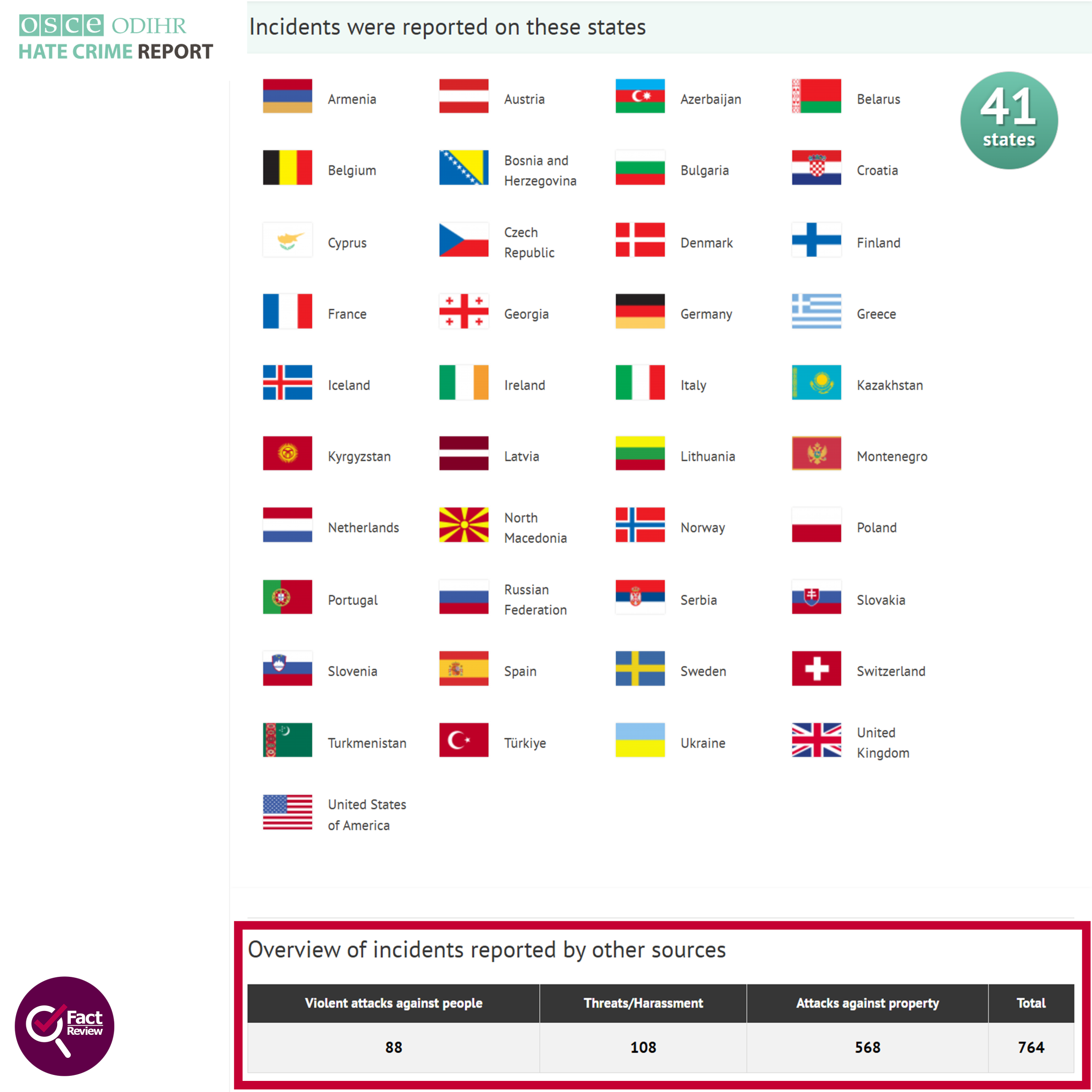 Στην ευρωπαϊκή διάσταση του ζητήματος, το ρεπορτάζ του Star αναφέρει ότι το 2024 σημειώθηκαν 760 στοχευμένες επιθέσεις σε ιερείς ή κατηχητές, με στόχο να τους σκοτώσουν ή να τους εκφοβίσουν. Αυτή η διατύπωση δεν προκύπτει από τα στοιχεία του OSCE/ODIHR για τα εγκλήματα μίσους κατά Χριστιανών. Η σχετική σελίδα εμφανίζει για το 2024 συνολικά 764 περιστατικά. Από αυτά, 88 καταγράφονται ως βίαιες επιθέσεις κατά προσώπων, 108 ως απειλές ή παρενοχλήσεις και 568 ως επιθέσεις κατά περιουσίας. Το ίδιο το ODIHR εξηγεί ότι στις συνηθέστερες μορφές τέτοιων περιστατικών περιλαμβάνονται γκράφιτι, βανδαλισμοί σε χώρους λατρείας, βεβηλώσεις κοιμητηρίων και εμπρησμοί εκκλησιών. Επίσης, στη συγκεκριμένη σελίδα φαίνεται ότι μόνο 16 κράτη υπέβαλαν επίσημα στοιχεία για το 2024 και ότι ο συνολικός αριθμός συμπληρώνεται και από άλλες πηγές, όπως οργανώσεις της κοινωνίας των πολιτών και διεθνείς φορείς.