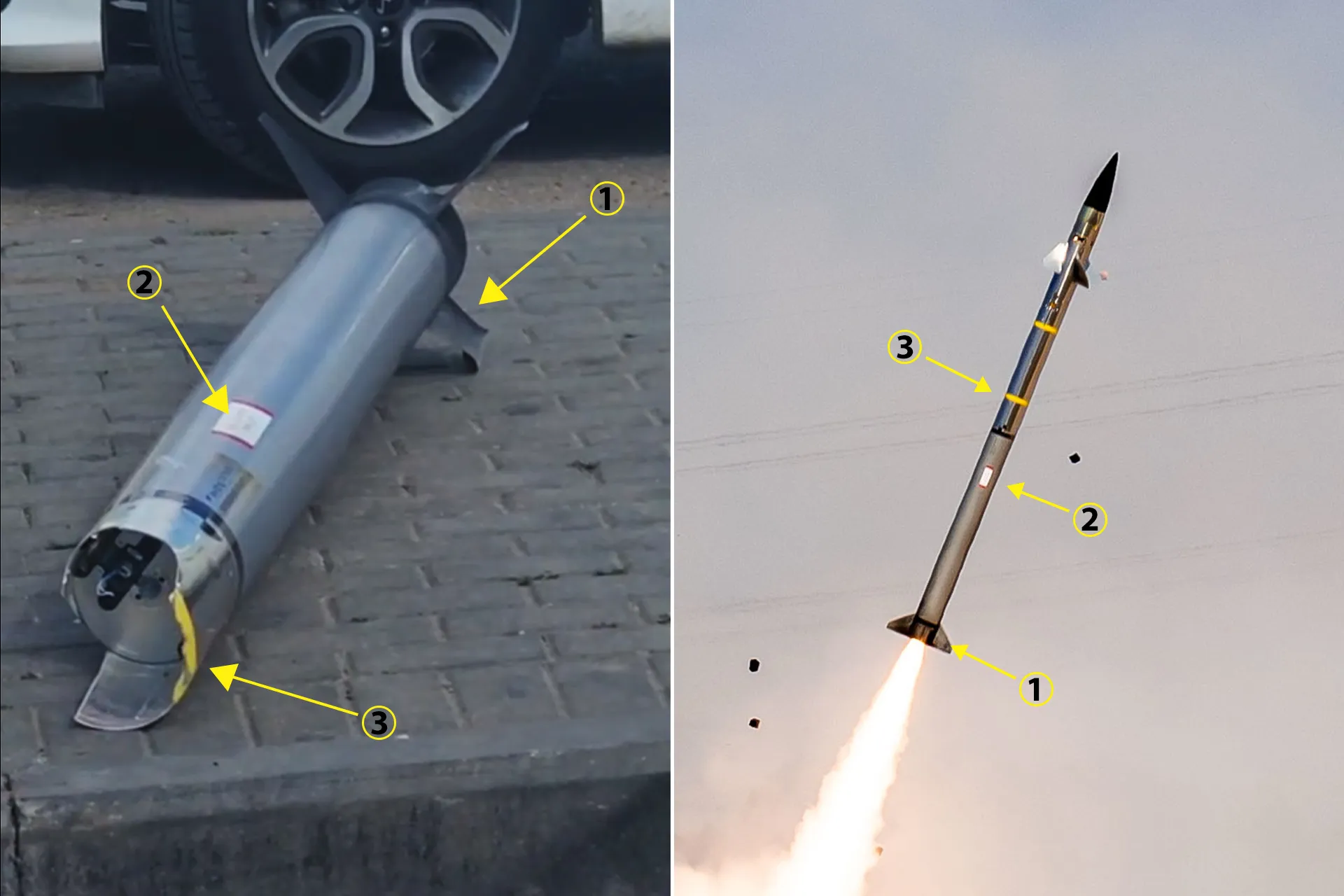 Επεκτείνοντας την εξέταση και σε ισραηλινούς πυραύλους, συγκρίναμε το στιγμιότυπο από το βίντεο που δημοσίευσε το ΥΠΕΞ του Ισραήλ με φωτογραφικό υλικό από παλαιότερες εκτοξεύσεις πυραύλων αναχαίτισης του Iron Dome το οποίο οδηγεί στο συμπέρασμα ότι το βίντεο δεν δείχνει ιρανικό πύραυλο, αλλά το κάτω τμήμα του αναχαιτιστικού πυραύλου Tamir, ο οποίος χρησιμοποιείται από το αντιπυραυλικό σύστημα Iron Dome και κατασκευάζεται από την εταιρεία Rafael.